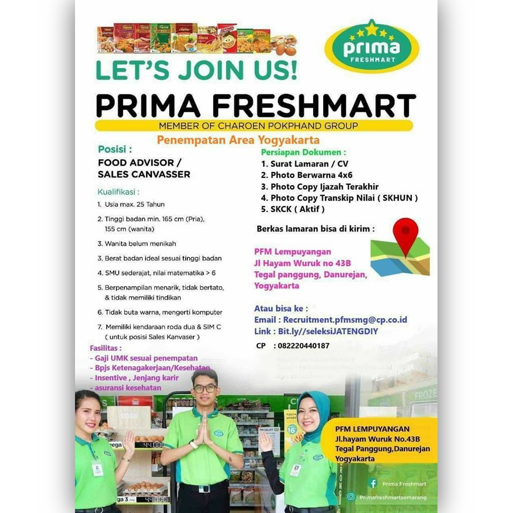 Prima freshmart merupakan group charoen pokphand dan sebagai perusahan retail yang bergerak di produk ayam dan olahan yang sedang berkembang dan membutukhan tenaga tenaga kerja yang profesional. Demi kemajuan perusahaan kami mengedepankan visi dan misi, adapun kebiasaan yang kami lakukan di. Sosis nuggetnya jg banyaj yg promo. Memiliki kendaraan roda dua dan sim c (untuk sales kanvaser). Cara melamar kerja via email di prima freshmart bagian food advisor/sales canvaser dan store leader.